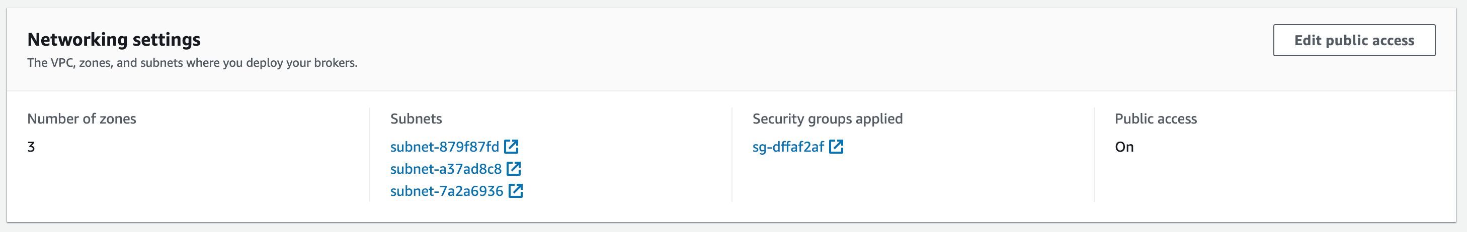 Depending on how you will be connecting to the cluster, you'll need to configure the networking settings accordingly. If you are only connecting to Kafka from inside your private VPC, then private networking is typically sufficient. On the other hand, if you're planning to connect to the cluster from the internet (ie. if you were using the Kafka cluster as a development instance from your local machine), you'll need to set up public access. You will also need public access if you plan to monitor your cluster from a tool hosted on the internet, like with provectuslabs.
